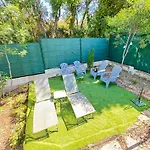 R1G-120 M Plage-2 Ch-Jardin lägenhet erbjuder ett komplett kök samt rum med balkong, te/kaffebryggare och plattskärms-TV med satellitkanaler. Boendet är beläget 2 km från Plage du Camp Long och 4 km från Pic du Cap Roux.